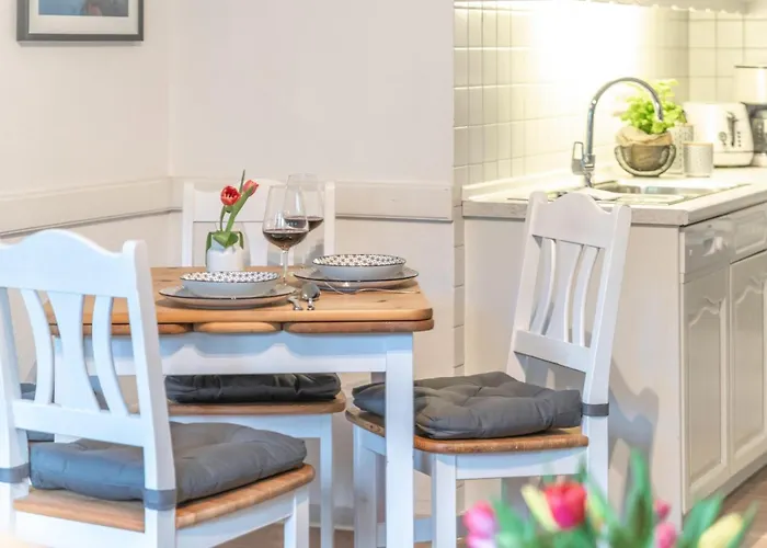 Doki promowe znajduje się 17 min pieszo od apartamentu Ferienwohnung "Gluck Gehabt" o powierzchni 50 m^2, natomiast Muzeum lokalnej historii fryzyjskiej w Wyk znajduje się w pobliżu. Goście mogą korzystać z Wi-Fi i parkingu na terenie.